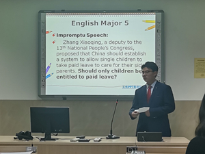 经过初赛、复赛的激烈角逐,最终有专业组6名,非专业组14名同学进入决赛。本次决赛共分为三个环节,分别是命题英语演讲、即兴英语演讲和综合知识速答。比赛过程中,选手们用流利的英语畅谈自己的观点,出色的表达能力赢得了观众的阵阵掌声。即兴演讲环节,选手们淡定自若,侃侃而谈,以自信的姿态与流畅的英文展现了当代老员工的风采,在场的观众和评委共享着这一视听盛宴。