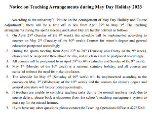 稳定的教学秩序是保证教学质量的基础,为进一步加强课堂教学管理、规范课堂教学秩序,提高课堂教学效率和质量,树立良好的教风、学风,mk体育在“五一”假期来临之前,采取多种措施,加大对日常教学过程的监管,严格规范教学秩序,不断提高人才培养质量。
