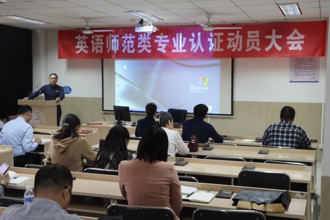 10月10日,mk体育在一教第二语音室举行了英语师范类专业认证动员会。公司领导班子成员、英语系全体教师和办公室、教管办相关科室负责人参加了动员会。