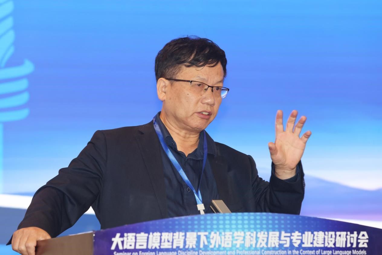 胡开宝教授在致辞中指出,外国语具有工具性、文学性、科学性特点,大语言模型技术在外语教学中的应用具有非常广阔的前景,外语学科现有课程体系和专业设置未能对接大语言模型技术以及人工智能技术的发展,面向大语言模型的外语学科教育和研究亟需开展,以创新驱动教学,以研究驱动教学。