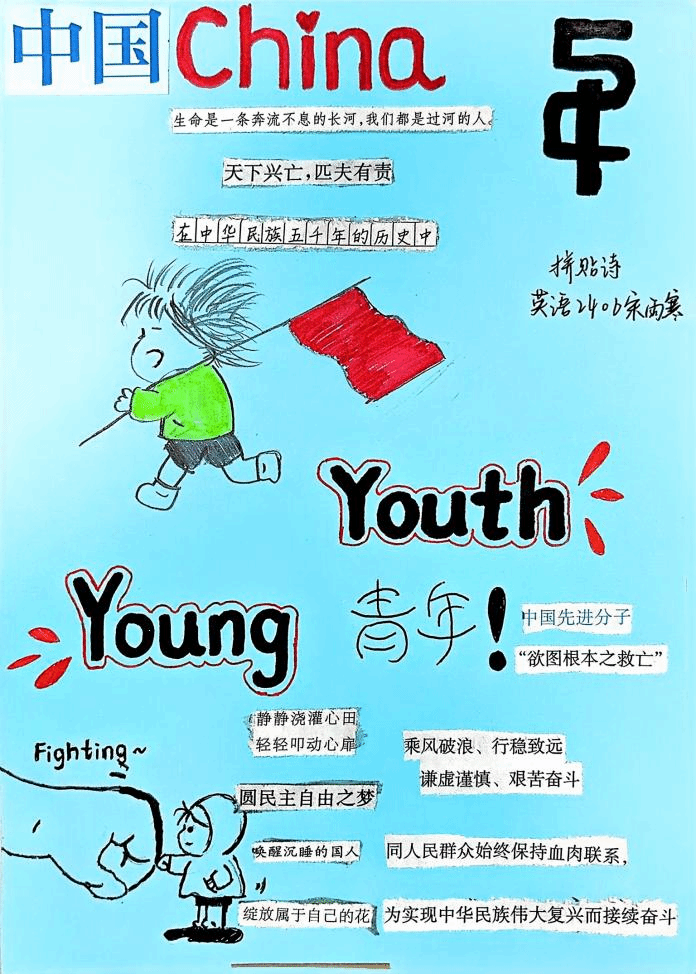 执笔绘五四,书卷展风华。在手抄报设计大赛中,同学们以青春笔触勾勒家国壮志,通过色彩与文字的创意碰撞,生动展现新时代青年的蓬勃朝气与精神传承。