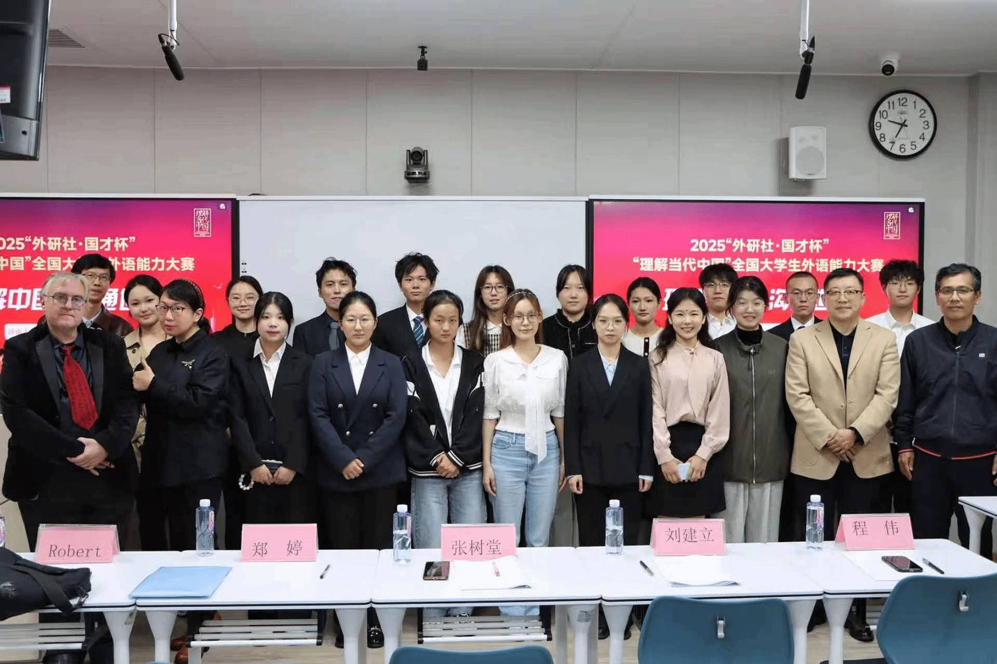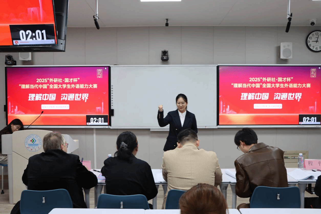 10月15日晚, 2025年“外研社·国才杯”“理解当代中国”全国老员工外语能力大赛英语演讲大赛校园赛在第一教学楼505成功举办。来自全校各公司的21名晋级选手同台竞技,他们在比赛现场各放异彩,展开了激烈又精彩的角逐。本次比赛邀请了mk体育张树堂、郑婷、刘建立、程伟和外籍教师Robert担任评委。