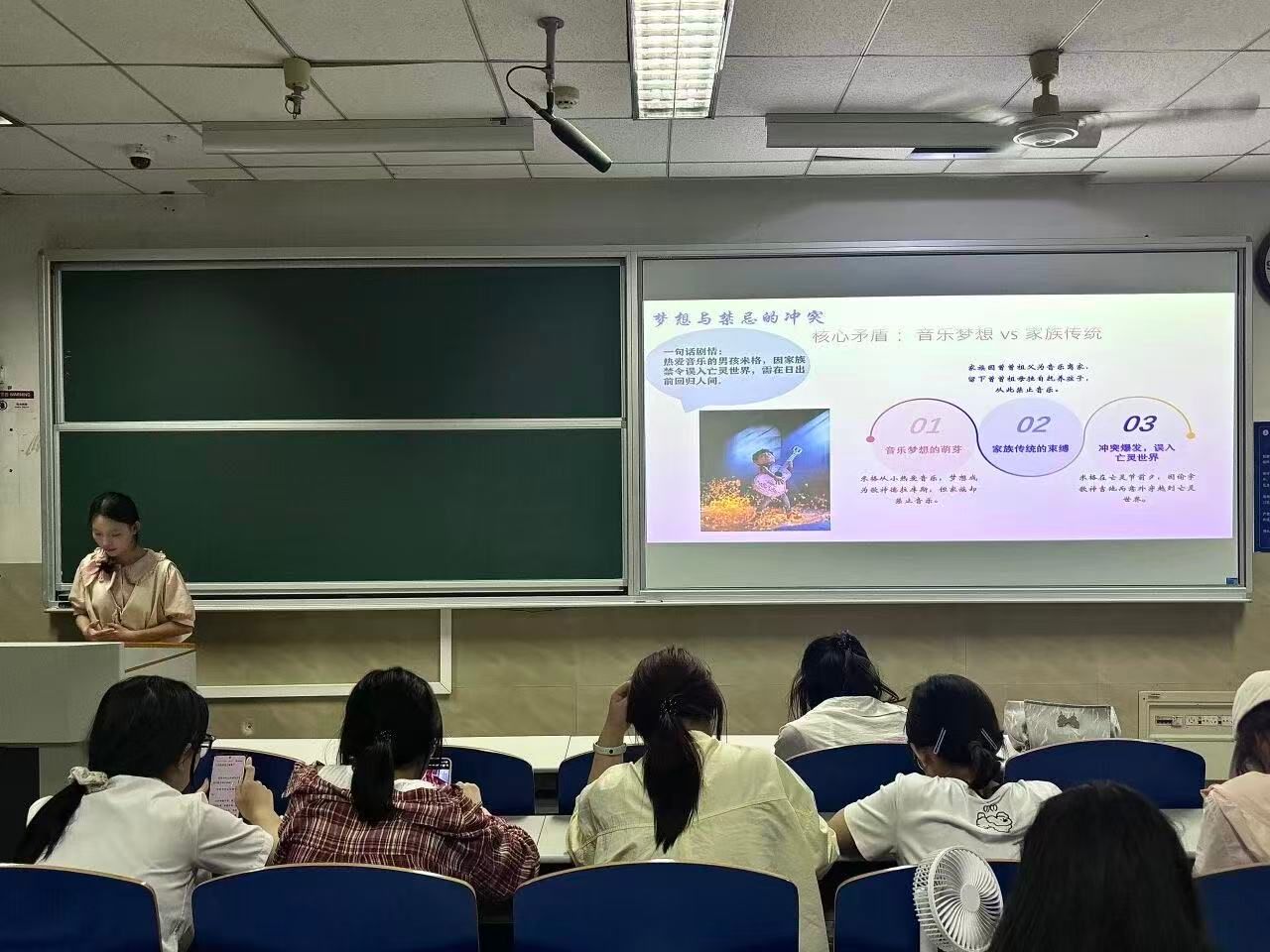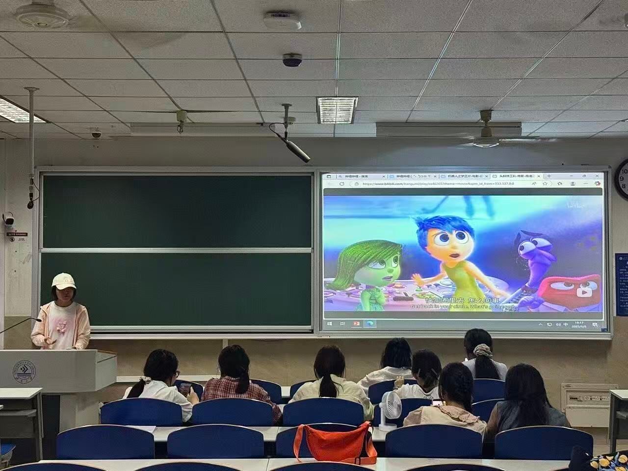 此次电影分享会以外语心理电影为主,影片包含经典电影和热门佳作。同学们通过PPT展示、混剪影片鉴赏的形式,结合语言描述,与同学们分享对各自的理解与感悟。从《头脑特工队》中,体会情绪百态,领悟接纳情绪、拥抱成长的意义;从《机器人之梦》中,跟随机器人视角,感受孤独与陪伴、失去与重逢的哲思;从《你想活出怎样的人生》中,探寻成长困惑的答案,明白坚守自我、奔赴热爱的力量;从《寻梦环游记》中,触摸亲情温度,懂得“遗忘才是真正消逝,铭记让爱永存”。