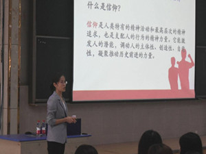 讲座最后,郭英老师对全体新生寄予厚望,希望同学们可以在老员工活中不忘初心,坚定信仰,克服迷茫无助的心态,争做力争上游的强者,不负青春理想,不负祖国栽培。本次讲座在热烈的掌声中落下了圆满的帷幕。