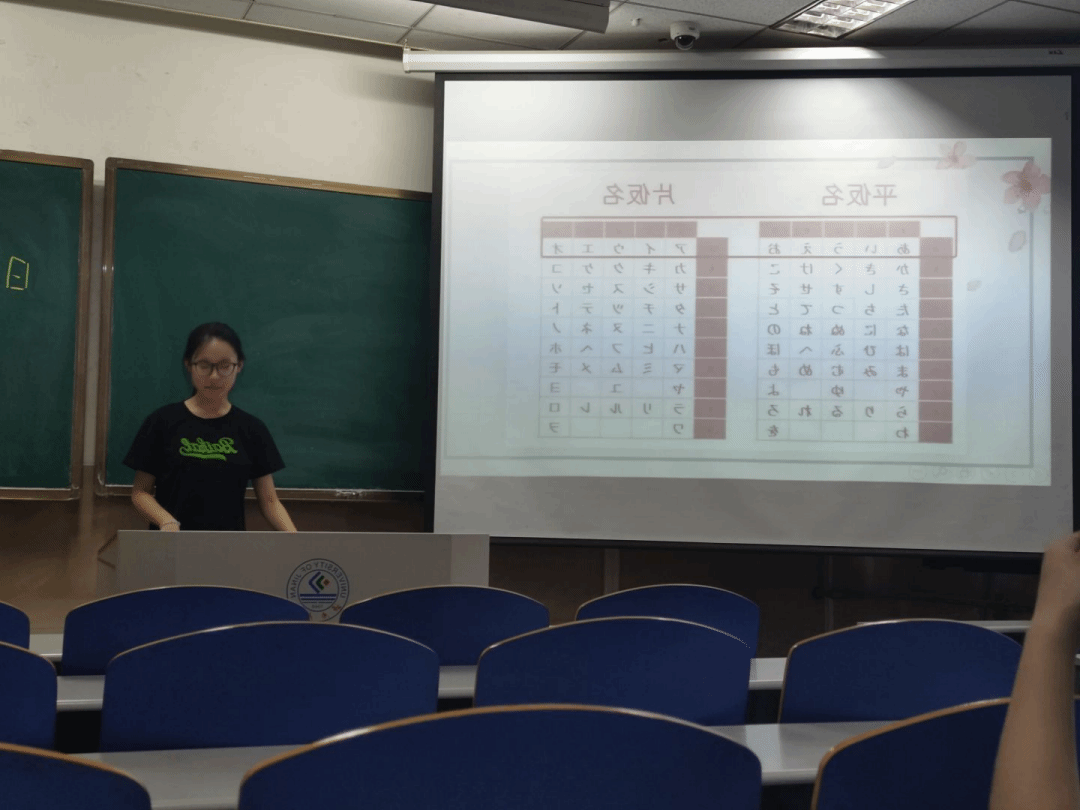活动第一项,由协会李博文和杨世杰两位同学带领大家回顾了之前学习过的五十音、日本日常用语等,讲解了平假名的来源便于大家记忆,详细讲述了平假名的相关知识以及五十音图的重要性,使成员们对五十音的学习更加深入。