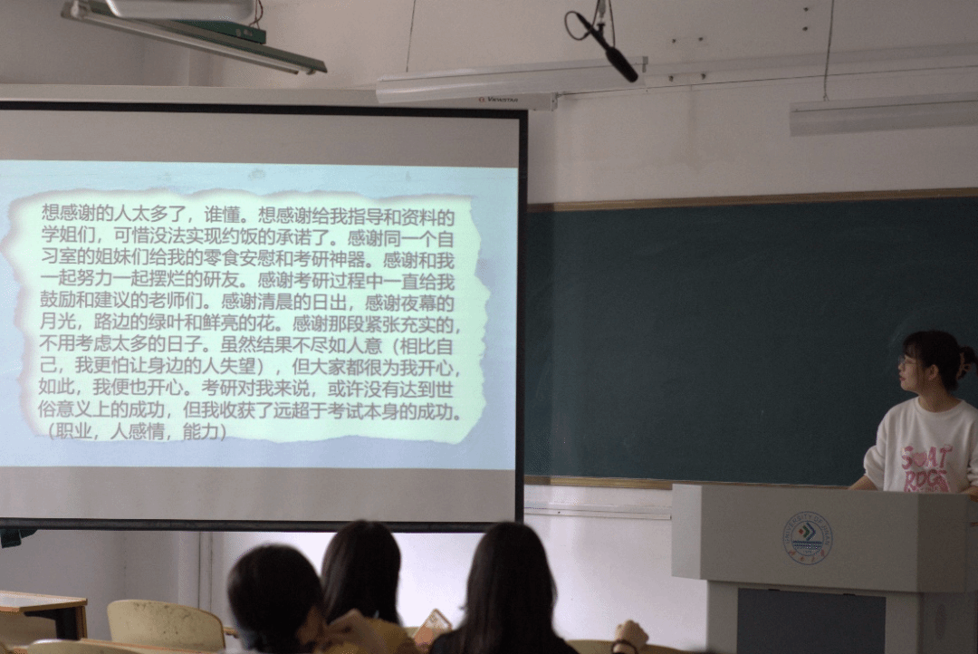 首先,许老师对2019级考研顺利上岸的同学表示了祝贺,并结合日语专业分析当下的员工考研形势,鼓励要同学们要坚定方向,努力拼搏。