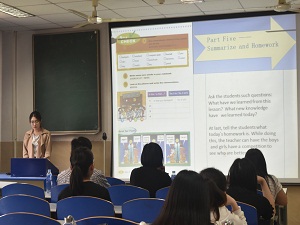 在指导过程中,老师针对如何抓住教学重难点、如何确立教学目标、如何提高自己的教学方法等多方面清晰明确地教授了同学们并要求他们对教材、学情进行深入理解与分析,深刻剖析所教授课程内容。在模拟讲课指导中,老师告诫同学们要注意自己的英语发音,要让自己的课堂变得生动有趣,不能让面试官有厌烦心理,要让每一个人深入其中。老师还提醒同学们要注意细节、注意运用图片和多样化词汇,使课堂更加具有感染力。老师还说道,在面试过程中,要有随机应变的能力,不能怯场,发现自己出错时应该用别的婉转的方法将其纠正,不能突然停下并卡壳。