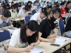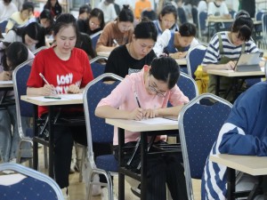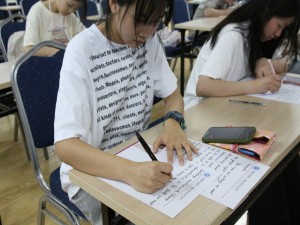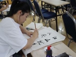 比赛开始前,各参赛选手签到确认比赛资格,而后依次入座。硬笔书法参赛选手全神贯注,用心书写每一笔,每一画,每一字,在方格间挥洒书写之豪气,在横线上展现字母之灵动。软笔书法大赛选手们蘸墨、挥腕、转锋、提笔,一幅幅作品跃然纸上。