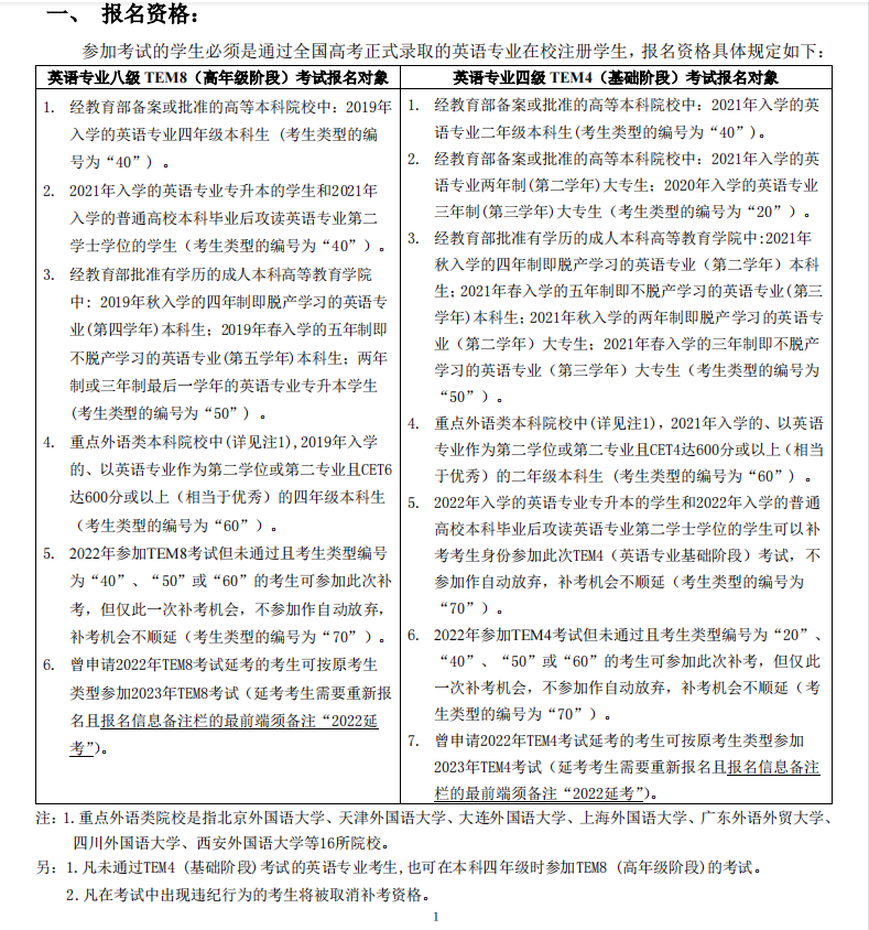 2023年度英语专业八级考试(TEM8)定于2023年4月22日(周六)举行,2023年度英语专业四级考试(TEM4)定于2023年6月18日(周日)举行。本次TEM报名对象包括符合2023年TEM报考资格的考生以及因疫情原因已于2022年备案延考资格的考生。
