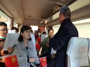 “共产党好,共产党好,共产党是人民的好领导”,“我和我的祖国,一刻也不能分割……”。在于书记的指挥下,大家齐唱“社会主义好”和“我和我的祖国”等红歌,嘹亮的歌声在大巴车内激荡,唱出了共产党人的豪情壮志,表达对伟大祖国、伟大的党深深的热爱。