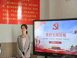 会议伊始,公司党委副书记、副经理郭英从学习党史的重要意义、中国共产党的光辉历程、青年党员如何发挥模范带头作用等三个方面讲授《党的光辉历程》主题党课,带领毕业生党员重温牢记“中国共产党一大到十九大会议主题”、“四史”、“红船精神”的相关内容,并用陈望道、王会晤等人先进事迹勉励青年党员们坚持操守、不忘初心,始终牢记党员身份。在庆祝中国共产党成立100周年之际,郭书记对每一位青年党员提出殷切期盼:希望每一位同学都能从党史中汲取砥砺前行的力量,在学史明理、学史增信、学史崇德、学史力行中行稳致远,做到学党史、悟思想、办实事、开新局。期望各位青年党员始终保持政治热情,践行“红船精神”,以满腔的热情投身中国特色社会主义建设的伟大事业中。